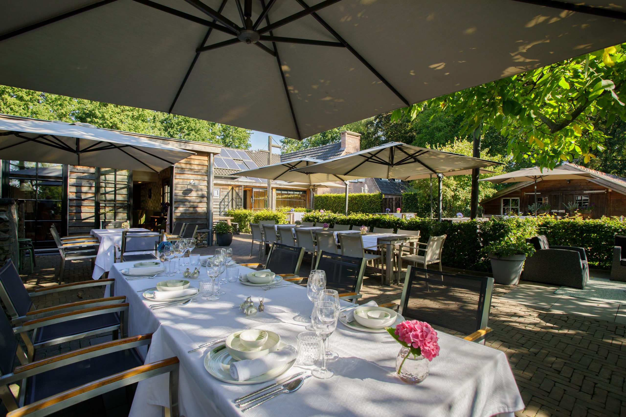 Onze locatie is altijd exclusief gereserveerd voor één gezelschap. U heeft alle voorzieningen volledig tot uw beschikking, inclusief de ruime parkeerplaats en het grote terras. Dit zorgt voor rust en vrijheid.